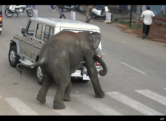 Elephant Attack In Mysore has been fatal. Two wild elephants have entered the Bamboo Bazaar area of Mysore city in Karnataka, and have trampled a security guard to death. Forest guards and Mysore zoo authorities have been contacted and the smaller of the two elephants has been injected with a tranquilizer.